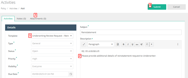 3. Select: Underwriting Review Request – Reinstatement